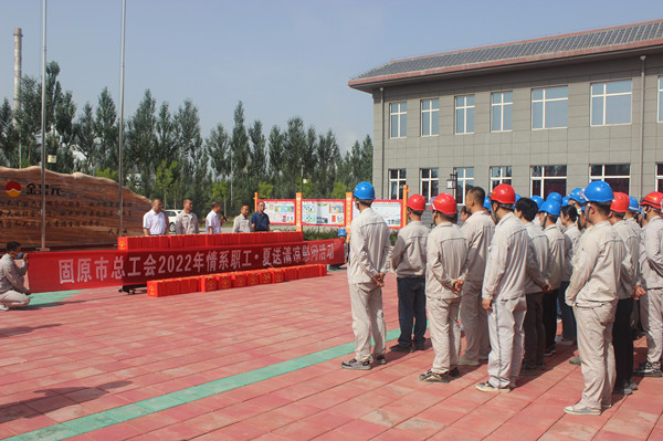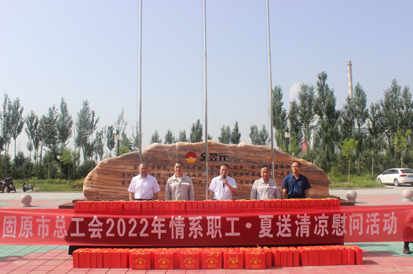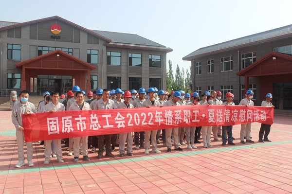 7月8日上午,固原市总工会常务副主席王志贤、开发区总工会常务副主席罗天、开发区管委会规划建设局副局长海滨一行,莅临开云体育官方网站固原片区,为坚守在生产一线的员工送来防暑降温用品。