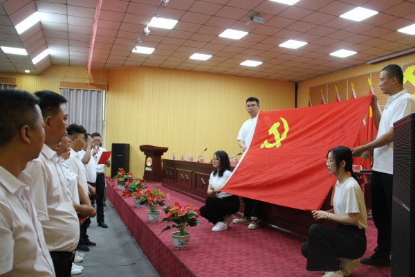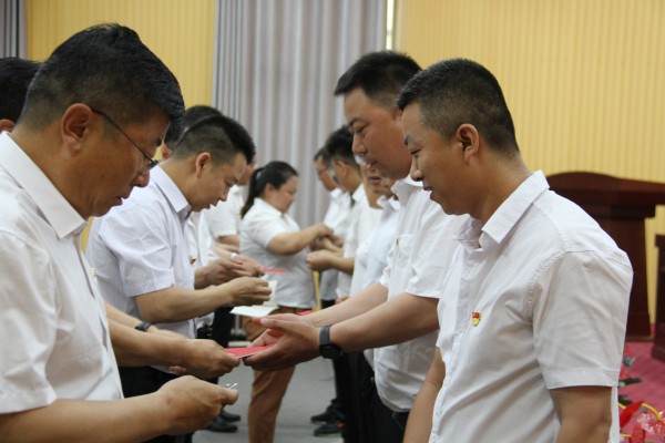 党委领导班子为新党员佩戴党徽,颁发《党章》。