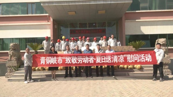 青铜峡市总工会和固原经济开发区总工会为集团公司送来西瓜、矿泉水、金丝菊、冰糖等防暑物品,表达对企业一线员工关心和厚爱。