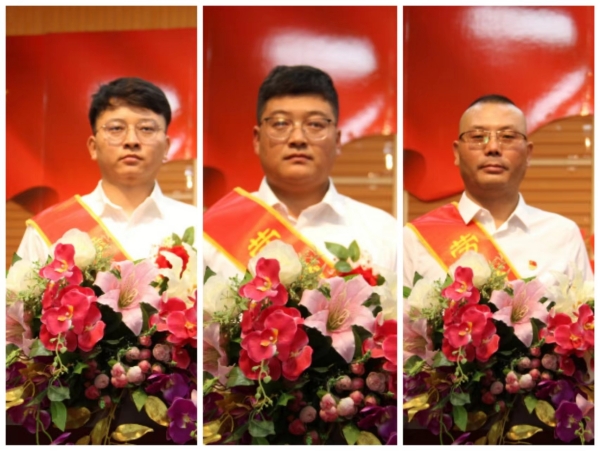 劳动模范:左:资源循环公司 席文童;中:广拓能源公司 麻玉龙;右:炔烃节能公司 金学锋