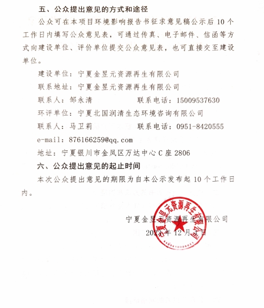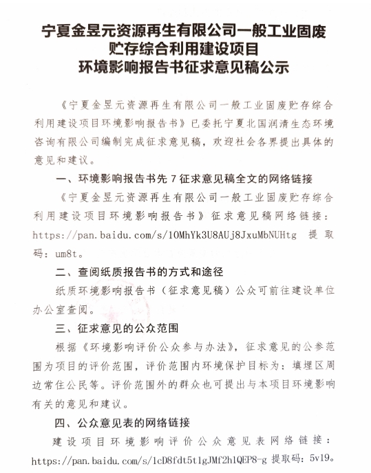 宁夏开云体育官方网站资源再生有限公司一般工业固废贮存综合利用建设项目征求意见稿公示
