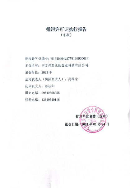 宁夏兴昊永胜盐业科技有限公司2023年度排污许可执行报告
