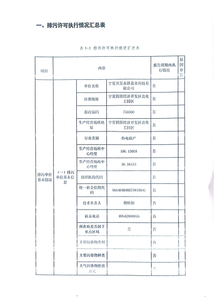 宁夏兴昊永胜盐业科技有限公司2024年第1季度排污许可执行报...