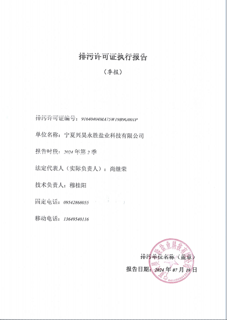 宁夏兴昊永胜盐业科技有限公司2024年第2季度排污许可执行报告