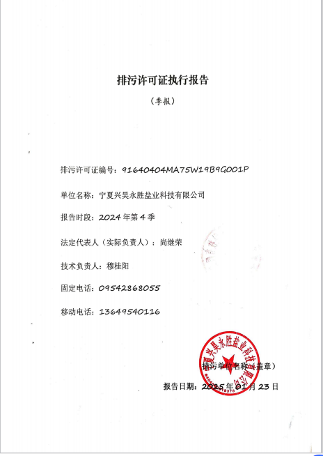 宁夏兴昊永胜盐业科技有限公司2024年第4季度排污许可执行报告