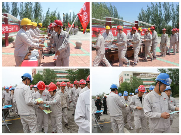 参加启动仪式的员工庄严宣誓:为了公司稳步发展,为了个人安全健康,为了家庭幸福美满,忠诚企业,恪尽职守,坚守红线,珍爱生命,创建平安企业;坚决做到:牢记安全,遵守纪律,履行安全职责,不违章、不冒险、不留隐患、不出事故,以实际行动争做安全合格员工,确保安全,让企业放心,让家人放心。