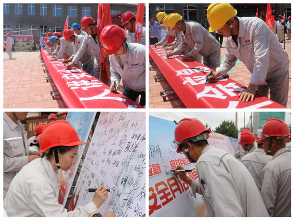 大家在签字版上签下自己的姓名,郑重承诺,将牢固树立安全意识,以身作则、严以律己,严格规范安全行为,防止各类事故发生,共同维护公司安全稳定局面。