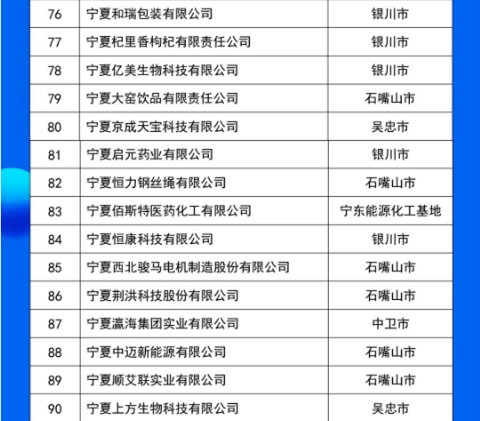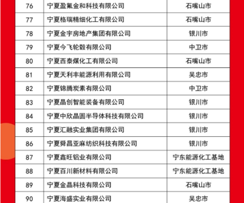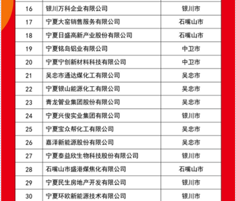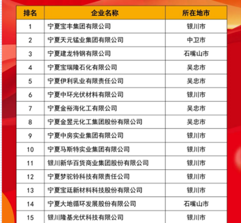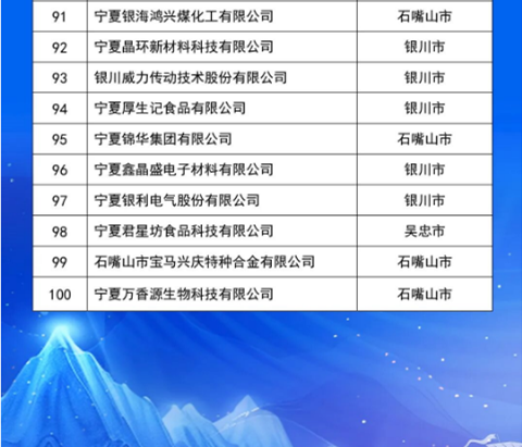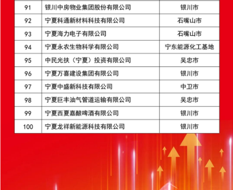 10月21日,2025宁夏民营企业100强发布会在吴忠市举行,发布了“2025宁夏民营企业100强榜单”,入围门槛5.84亿元,入围企业营收总额为3513.79亿元,资产总额5755.01亿元,利润总额506.80亿元。其中,制造业有73家,房地产业有11家,建筑业、批发和零售业、电力热力燃气及水生产供应业各有4家,交通运输、仓储和邮政业有2家,商务服务业有1家,农、林、牧、渔业有1家。有28家企业涉及新型材料产业,有18家企业涉及风电、光伏、氢能等清洁能源产业。会上,还发布了“2025宁夏制造业民营企业100强榜单”和《2025宁夏民营企业100强调研分析报告》。