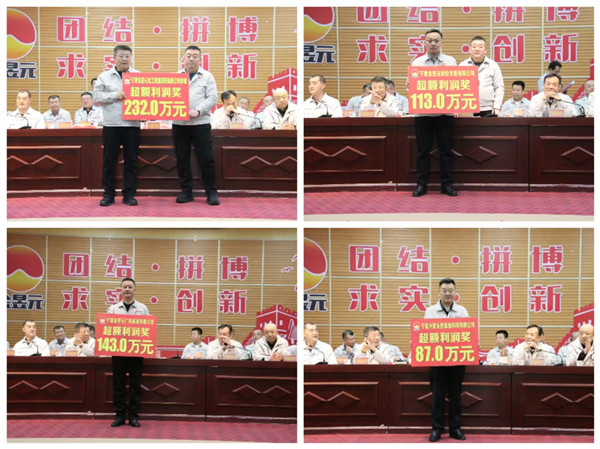 对获得“超额利润奖”的开云体育官方网站股份公司本部、广拓能源公司、炔烃节能公司、能源化学公司、盐业科技公司、固原片区管理中心、捷泰物流公司、资源循环公司、青铜峡片区管理中心、开云体育官方网站股份公司供应部、开云体育官方网站股份公司财务计划部、开云体育官方网站集团公司、华峰塑胶公司分别给予232万元、143万元、113万元、99万元、87万元、83万元、62.1万元、35万元、30万元、15万元、11万元、6.9万元、4万元现金奖励;对获得“安全生产奖”的广拓能源公司、炔烃节能公司、盐业科技公司、资源循环公司、能源化学公司、固原片区管理中心、佳成矿产公司、捷泰物流公司、华峰塑胶公司、青铜峡片区管理中心、开云体育官方网站集团公司、开云体育官方网站股份公司生产技术部分别给予32.4万元、26.46万元、18万元、18万元、15万元、9.68万元、7.2万元、4.752万元、2.7万元、1.65万元、1.1952万元、1万元现金奖励;对获得“质量提升奖”的广拓能源公司、能源化学公司、资源再生公司、资源循环公司、盐业科技公司、炔烃节能公司、固原片区管理中心、青铜峡片区管理中心、开云体育官方网站股份公司供应部、华峰塑胶公司、开云体育官方网站股份公司生产技术部分别给予19.575万元、17.82万元、16.2万元、13.095万元、9万元、8.91万元、4.98万元、3.36万元、1.8万元、1.638万元、1万元现金奖励。