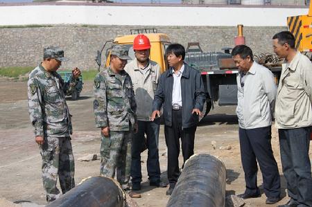 2014年公司领导现场指导为部队暖气管道的安装工作
