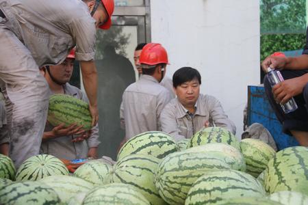 炎炎夏日、高温酷暑,生产一线职工战高温、斗酷暑,为公司的发展付出了艰辛的汗水,做出了突出的贡献,他们坚守岗位、恪尽职守、任劳任怨、兢兢业业始终坚持在生产一线,这些都牵动着集团公司领导的心,时刻不忘战斗在生产一线的职工们,特别是高温季节,更是关注安全生产,关心职工,给生产一线的职工们送去6000斤解暑的西瓜,为职工夏日生产送去清凉。