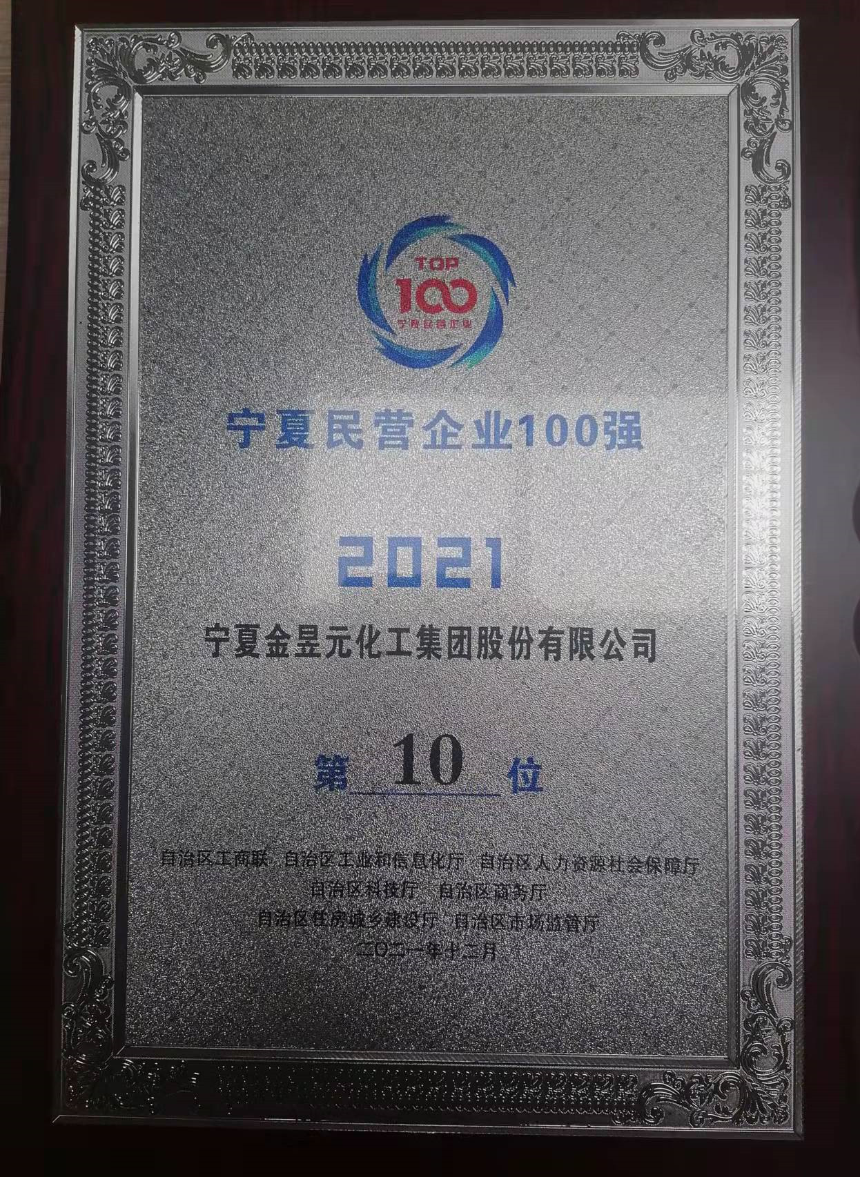 获自治区百强民营企业荣誉